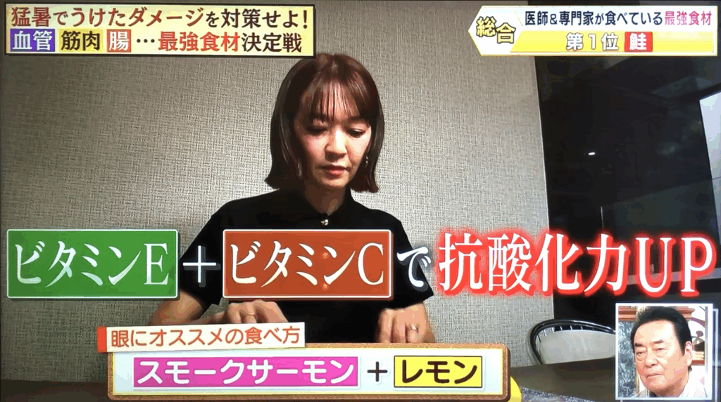とくに、豊富なビタミンCで紫外線から目を守るパプリカや、抗酸化作用が非常に強力なアスタキサンチンを含む鮭が「医師が選ぶ最強食材」として紹介されました。これらの食材は、白内障リスクの軽減や、体の酸化を防ぎ免疫機能を高めるなど、多くの効果が期待できると解説されました。猛暑による体のダメージ回復にも有効です。